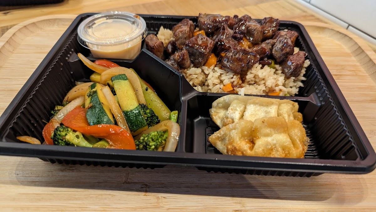 “ This place opened 2 weeks ago and the food looks delicious! found this from google maps and glad we did! the hibachi option is awesome! The steak and shrimp are cooked deliciously! The steak is close to well done but still has great flavor. The employees are very inviting and friendly! They’re excited to work here ”